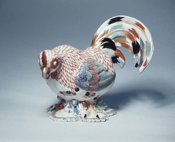 This magpie was crafted at the Meissen Manufactory, likely in the 18th century, using porcelain. Porcelain is a tricky medium: you have to fire it just right, and then paint it with metallic oxides that transform into a spectrum of colors during a second firing. The magpie's crisp black and white plumage, its dynamic pose with beak open, and the delicate flowers at the base all showcase the extraordinary level of skill achieved at Meissen. This manufactory was the first in Europe to master the production of true hard-paste porcelain, a closely guarded secret previously known only in China. But remember, the term “manufactory” implies a division of labor. While a master modeler may have designed this magpie, many hands would have been involved in its production. From mixing the clay to painting the final details, each worker contributed to the final object. So, when you look at this exquisite sculpture, consider not only its aesthetic beauty but also the complex social and economic system that made its creation possible.