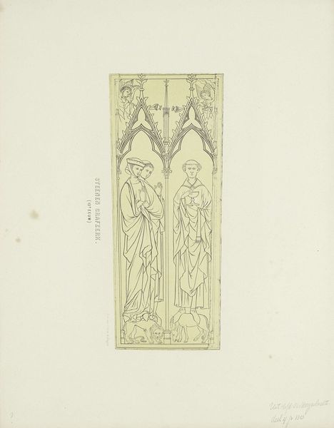Antoon Derkinderen made this image of Mary and the Christ Child sitting on Solomon's throne using pencil and watercolor. You can see how the artist used the characteristics of the materials to create a sense of depth and texture in the piece. With its translucent washes, the watercolor lends itself well to the ethereal quality of the subject matter. The pencil work is clearly visible beneath the watercolor, adding definition to the forms, and creating a sense of underlying structure. The texture of the paper also plays a role, its slight roughness gives the image a tactile quality. Derkinderen’s choice of modest materials reflects the traditions of manuscript illumination, reminding us of the labor and skill involved in such art forms. The deliberate combination of drawing and watercolor techniques also reflects the artist's grounding in both traditional craft and fine art practices. By emphasizing these aspects, Derkinderen elevates the status of craft, while also democratizing the fine arts.
