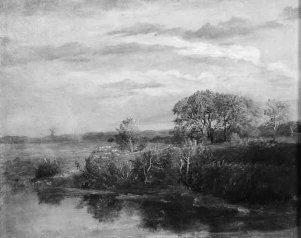 Vilhelm Kyhn’s ‘Study of Evening Sky and Trees’ is an exercise in oil paint, likely dating from the mid-19th century. The visible brushwork immediately tells us about Kyhn's process. Notice how the paint is applied in thin layers for the sky, and thicker, more textured strokes for the trees. The monochrome palette emphasizes the materiality of the oil paint itself. It’s a humble, accessible medium, yet capable of great subtlety. Kyhn captures a vast, changing sky and a dense landscape, all with a limited range of tones. The act of painting en plein air, which is painting outdoors, was becoming increasingly popular during this period, influenced by industrialization and the availability of transportable materials. Kyhn's choice to study the evening sky and trees reflects a connection to the natural world but also to the rapidly changing social landscape of his time. This painting reminds us that even the most traditional art forms are deeply embedded in their social and material context. The focus on the physical qualities of paint, and the way Kyhn applied it, is just as important as the subject matter itself.