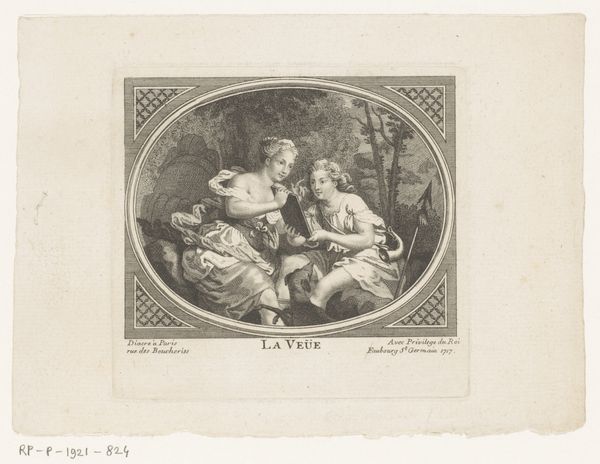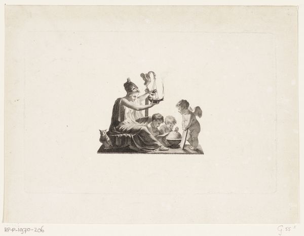 Jacques Louis Copia created this print, titled "Gelijkheid," sometime in the late 18th century, using engraving. It's a method of cutting lines into a metal plate, inking it, and pressing it onto paper. The crisp lines give the print its distinctive look, a contrast of light and dark. Notice how this method allows for fine detail, evident in the depiction of the figures. The process itself, requiring skill and time, reflects the values of craftsmanship and precision that were highly regarded during this period. Prints like these were crucial in spreading ideas, including those of the Enlightenment, far beyond the elite circles of society. They were relatively affordable and reproducible, making them powerful tools for communication and social change. The image of equality, therefore, wasn't just a concept; it was a message crafted and disseminated through the labor-intensive process of engraving, ultimately reaching a wider audience. Considering the print's material and the mode of its production, it becomes clear that art and craft cannot be separated from the social and political context in which they were made.