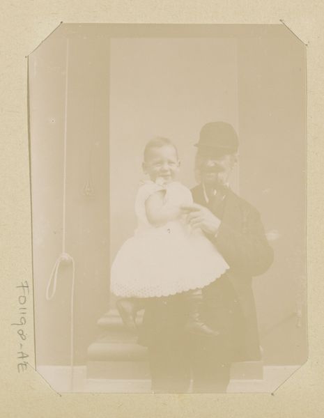 This is a portrait of an unknown old man with a toddler, made by Johanna Margaretha Piek. The sepia tone imparts a sense of nostalgia, highlighting a formal composition which draws focus to the juxtaposition of two figures. Notice how the arrangement of shapes and lines creates a visual harmony. The old man, clad in a dark suit, stands rigidly, creating a strong vertical axis. He holds a child dressed in lighter tones, contrasting his sombre figure. The texture of the old man’s clothes is rich with detail, while the child’s attire is simpler, emphasizing purity. The contrast of light and shadow gives depth to the subjects. The photograph engages with ideas about time, memory, and mortality. The visual contrasts between the subjects raise questions about our cultural understanding of age and innocence. It reminds us that art is not merely representational but is also engaged in an ongoing dialogue of what we believe to be true.