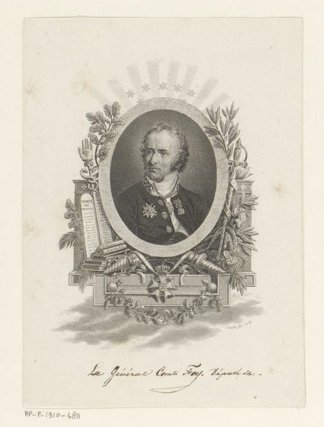 This is an undated portrait of Don Jan van Oostenrijk by an anonymous artist, rendered with engraving. The portrait’s visual structure is dominated by the oval frame, contrasting with the sharp, linear armour worn by the sitter. Note how the engraver uses line and texture to differentiate between the textures of skin, metal and lace. Each element is given equal weight, flattening the perspective, and challenging traditional notions of depth and hierarchy in portraiture. The way the artist used line destabilizes established ideas about representing status and identity. Consider how the structural framework of the portrait—the frame, the subject's attire—functions as a sign system. Each element signifies aspects of power, status, and identity. Through careful arrangement and attention to detail, the engraver invites us to consider how such elements function not just aesthetically but also as part of a larger cultural discourse about representation and meaning.