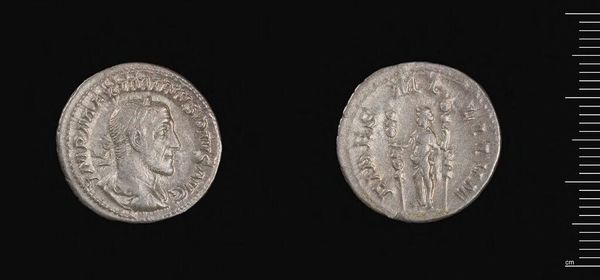 Curator: Here we have a denarius, a Roman silver coin, attributed to the reign of Elagabalus. It's quite small, just over two grams. Editor: It feels surprisingly weighty, doesn’t it? I mean, not physically, but the implications of something so small having such power. Who gets their face on the money? Curator: Exactly. The craftsmanship here, the pressing of the metal, speaks to a whole system of labor and production—from the mines to the mint. Editor: And on one side, the emperor's profile—stern, almost melancholic. I wonder what story it could tell. Curator: Perhaps of a young ruler, barely more than a boy, grappling with the weight of empire. Editor: It is interesting how the production of currency ties labor, power and consumption together in such a small object. Curator: Indeed, it's a tactile piece of history in your pocket.