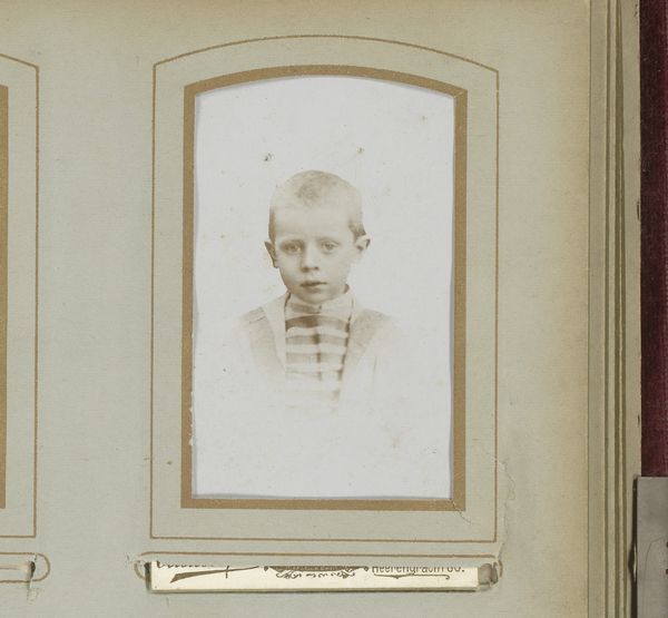 Curator: Here we have an intriguing work attributed to De Lavieter & Co., entitled "Portret van een jongen", dating roughly from 1880 to 1903. Editor: My first impression is of muted tones and a somewhat haunting presence; there's an ethereal, almost dreamlike quality to it. Curator: That certainly reflects the pictorialist style, focusing on aesthetic effect. It’s more than a straightforward portrait; it presents constructed artifice. Considering that many portraits from this period captured boys at the cusp of industrial labor, I cannot help but interpret this piece as a potential reflection on shifting ideals and vulnerabilities related to childhood during a transformative epoch. Editor: Interesting point. I find my eye drawn to the contrast between the sharp, almost hyper-realistic detailing in his face and the softened edges elsewhere, which seem deliberately rendered to direct visual attention. What do you think that contrast accomplishes, formally speaking? Curator: I feel it enhances our reading of an almost manufactured and yet vulnerable subject. His direct gaze confronts us with this paradox of agency in a society eager to claim or reclaim these soon-to-be workers or participants in world conflict. In some ways, this piece feels more subversive than reverent, and more of a reflection on an intersectional and precarious space where innocence, class, and power meet in fin-de-siècle Western society. Editor: Perhaps. But let us also consider the compositional choices. The limited tonal range is really masterful here; it enhances the solemn mood and flattens depth in a way that brings him to the forefront. And in a formal sense, I feel these things evoke a universal statement that transcends societal concerns. Curator: I find the tension you observed formally quite arresting. Thank you. Editor: Indeed. Its combination of texture and lighting lingers in the memory.