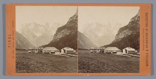 Editor: So this gelatin silver print, “Dorpsgezicht in het Pragsertal, Italië,” by Carl Alexander Czichna, likely taken sometime between 1860 and 1867, is beautiful in its rustic simplicity. There's a real grounded feel, a sense of place that feels both serene and monumental because of those imposing mountains. What stands out to you most as you look at it? Curator: Well, immediately, the church spire. It's a beacon, literally and figuratively, drawing the eye upwards, suggesting a link between the earthly village and the heavens. Consider its placement, almost centered in the composition but slightly offset – it evokes a careful balance. The surrounding landscape amplifies that spiritual quality. How do you interpret the presence and placement of those drying racks or fences in the foreground, repeated throughout the middleground of the scene? Editor: They almost look like crosses, scattered and fragmented. The foreground especially seems like a pathway, inviting us in, but it is also divided, like obstacles or barriers. Is it meant to echo life's journey and potential barriers to spiritual life, the trek to the church? Curator: Exactly. These repeated structures may reference the cycle of work and harvest, crucial for the village's survival. That simple wooden fence, it defines and protects, separates and guides. And what does that say about their way of life? A quiet life lived close to the land and shaped by deep-rooted spiritual tradition. Do you notice how the lighting seems to fall? It doesn't merely illuminate but casts a moral glow almost. Editor: It's definitely creating this feeling of reverence, making the mountains majestic. Thinking about the symbolism, it really does shift my perspective of it completely. I was focused on it as just a beautiful landscape at first. Curator: These rural places often have deeper connections to community life and enduring cultural values than we sometimes credit them for. I will definitely keep that in mind moving forward. Editor: Me too. I’ll also pay more attention to those seemingly small details that might unlock hidden cultural and historical meanings.