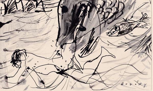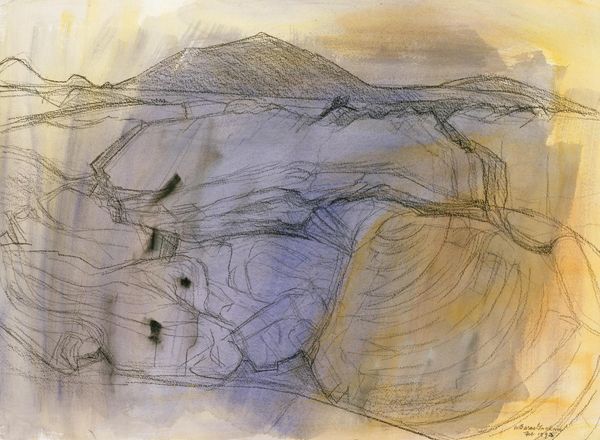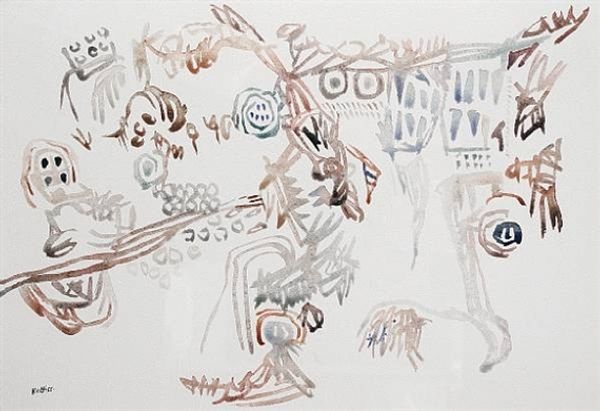 This is Czóbel Bela's drawing, "Beszélgetők," made with crayon. The work pulses with an agitated energy, its composition built from a network of lines and blocks of colour. The figures are defined through a series of sharp, angular strokes that barely contain them. The red and blue hues clash and vibrate, creating a sense of tension and unease. Czóbel’s drawing challenges conventional representational forms. He doesn't aim to capture a likeness, but rather to convey the essence of the interaction through colour and line. Consider the interplay between these formal elements: How do the colours and the textures work together to create meaning? The drawing can be seen as a precursor to later abstract explorations, where form takes precedence over narrative. Here, the act of seeing becomes an active process. The viewer must piece together the fragments to construct a coherent image.