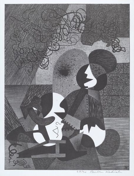 Reuben Kadish made this print, Street Musicians, and there is an immediacy to the mark making that makes me think of artmaking as a process. The textures are amazing, aren’t they? Look at the woman’s gown, it's a marvel of layered lines, a real symphony of hatching and cross-hatching. Each mark feels deliberate, yet the overall effect is wonderfully chaotic, like a jazz improvisation. I love the way Kadish balances the density of the dark areas with the stark simplicity of the white figure at the bottom. It's like he's playing with positive and negative space, creating a visual rhythm that keeps your eye moving around the composition. There's a particular squiggle right next to the coffee pot that gets me, it seems like a little musical flourish. It's this playful detail that hints at the interconnectedness of art, music and life, as if to say that art is always in conversation with itself and with the world. I love how Kadish embraces ambiguity and invites us to join in the fun.