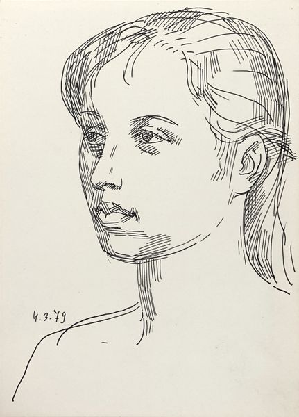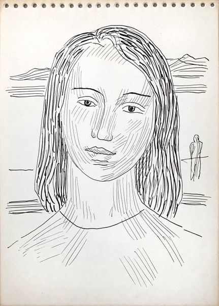 Editor: Here we have Hryhorii Havrylenko’s "Female Image" from 1975, a drawing on paper rendered in pencil. It feels… incomplete, like a memory fading at the edges. What strikes you when you look at this sketch? Curator: Oh, this drawing sings to me of fleeting moments and the quiet beauty found in imperfection! It reminds me of those rushed sketches artists would make in cafes, capturing the essence of a stranger’s face. Have you ever watched someone sketch in a park, Editor? There’s a certain intimacy, isn’t there, in the act of observing and interpreting a face with just a pencil? Editor: It feels very immediate, yes. I’m also struck by the varying pressure of the lines; some are delicate, others quite bold. Curator: Exactly! Those varied lines aren't just about depicting form, are they? They also express a certain energy, the artist's hand moving across the paper, feeling out the contours, the light... It's almost as if we're witnessing the thought process behind the drawing. It’s from 1975; what do you think the cultural background might be here, is there a hint of something in the hair style maybe, do you see that being fashionable then? Editor: Perhaps? The hair does seem reminiscent of styles from the mid-70s. I hadn't thought of that. It adds another layer, making her not just an image but a person of a specific time. Curator: And those times… well, they're always etched into us somehow, aren't they? Hidden like subtle notes in a melody. That’s where you start seeing, where your imagination can add value, where your opinion, matters! Editor: It’s incredible how much emotion a simple sketch can evoke. I will try to explore that more. Thanks so much for the insight! Curator: My pleasure! Always remember, every stroke tells a story.