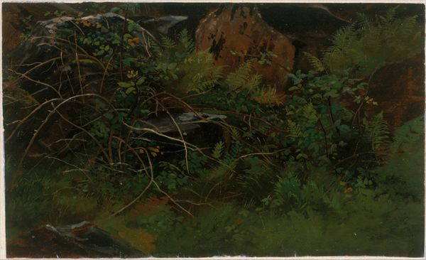 Nikolai Ge painted "Gorge in the Mountains of Carrara" using oil on canvas. The artwork’s composition pulls you into the shadows of a narrow passage, as if the cliffs are closing in. There's a tension between the dark, undefined space in the lower-left and the ochre-colored rocks that rise toward the small sliver of light above. The light source is ambiguous. It suggests a world outside the frame, while also emphasizing the gorge’s enclosed, almost claustrophobic atmosphere. The hanging object might be a boat, and its presence unsettles our expectations. Does it represent hope, or is it a symbol of entrapment? Ge manipulates light and shadow to create a sense of depth and mystery. The painting could be interpreted through the lens of existentialism. The gorge becomes a metaphor for the human condition, caught between the desire for freedom and the reality of confinement. This artwork remains open to interpretation, inviting viewers to reflect on their own place within such a seemingly vast landscape.