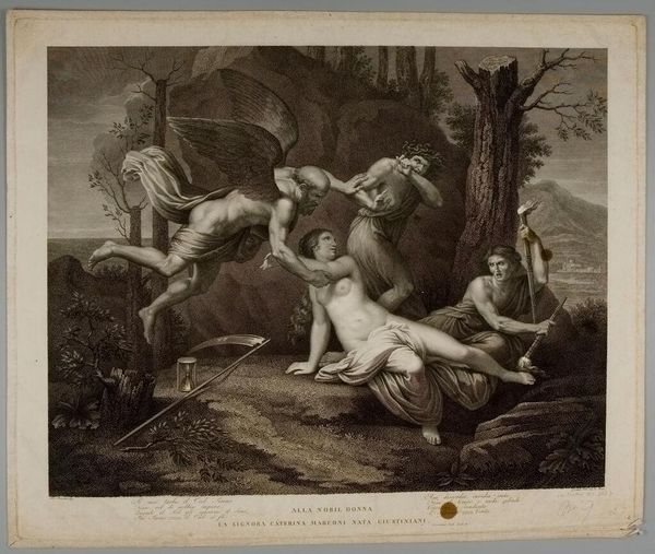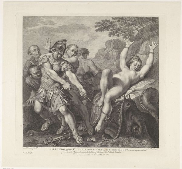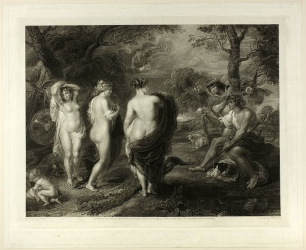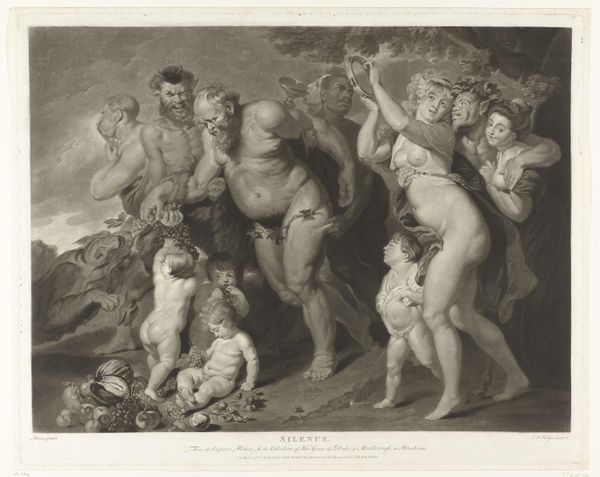 Editor: This is Robert Cooper’s "Bacchanalian Dance," and while the date's unknown, he was active around the turn of the 18th century. It's a print, with lots of bodies intertwined. What stands out to you? Curator: I notice the clear emphasis on production. This print served as a medium for circulating classical themes to a wider audience. Consider the labour involved in engraving and the societal desire for these images. Editor: So, it's less about the mythological scene itself, and more about how Cooper is replicating and distributing it? Curator: Precisely. Think about the cost of the paper, the engraver's time, and the market for such images. These factors dictated its creation, and who could access it. Editor: I never considered art consumption from that point of view. It adds a whole new layer to the image. Curator: Indeed. By examining the means of production, we see beyond the surface narrative.