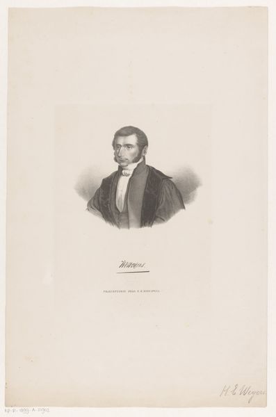 This is a portrait of Hendrik Engelinus Weyers, made by Leendert Springer, using the technique of etching. The lines that define Weyers's face and clothing have been bitten into a metal plate with acid. Etching allowed for the relatively easy mass production of images, playing an important role in the dissemination of knowledge and visual culture. The etched lines that compose the portrait are a testament to the skilled labor involved in the meticulous process. Springer’s artistic choices regarding line weight, density, and direction contribute to the overall texture of the work. Consider also how this image would have circulated. Was it bound into a book? Passed between friends? Placed on a wall? These questions speak to the social life of images, and their role in shaping historical narratives. Paying attention to the processes and contexts of production allows us to appreciate the many layers of meaning embedded within this seemingly straightforward portrait.