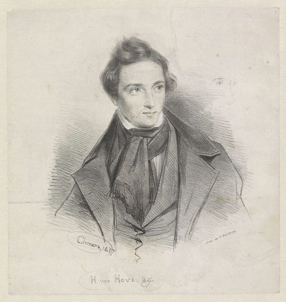 This is Antoine Maurin’s portrait of Louis-Auguste Papavoine, made with lithography. This printing technique involves drawing with a greasy crayon on a flat stone or metal plate, which is then treated to accept ink only where the crayon has marked it. Lithography emerged as a relatively inexpensive method of producing images, fueled by the Industrial Revolution's demand for mass communication. Its reliance on skilled draftsmanship, combined with the mechanical process of printing, reflects a tension between artistic expression and industrial production. The marks you see here evidence the artist’s hand but also his knowledge of mechanical reproduction. In this portrait, lithography captures the nuances of Papavoine's features and attire. The texture of his coat, the subtle shading of his face, and the overall composition convey both the sitter’s social standing and the artist’s skill. Consider how printmaking democratized image production. With its blend of handcraft and technology, Maurin’s portrait challenges the traditional hierarchy between art and craft, inviting us to appreciate both the skill of the artist and the industrial processes that enabled its creation.