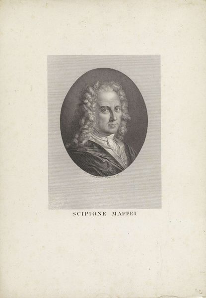 Curator: This print is a portrait of Pietro Verri, dating roughly between 1806 and 1830, by Giuseppe Benaglia. The technique employed is engraving. Editor: My initial reaction is one of cool austerity. The subdued palette combined with the subject’s piercing gaze evokes a sense of detachment, doesn't it? Curator: It's the conventions of Neoclassicism. Let’s situate Verri in the swirling milieu of Enlightenment Milan. He was a prominent economist, philosopher and writer advocating social and political reform at a key time. The artist and the sitter collaborated in shaping this message of a learned elite. Editor: That’s a good point. The oval frame containing his bust and the fur coat denote a sense of noble isolation. Do you agree the artist draws on very conventional symbolism associated with wisdom and erudition here? Curator: Undoubtedly. Verri was at the nexus of intellectual circles, but, interestingly, also grappled with profound existential questions relating to political power, reflected in his writings. Perhaps his piercing look tries to show all this? Editor: His eyes are really remarkable, especially when one considers this is an engraving! Their penetrating intensity contributes significantly to the work's aura. It also carries certain echoes of Roman portraiture. Do you think he looks Italian? Curator: Well, that’s hard to say, but considering Verri's dedication to social reforms, I think the portrait speaks about Enlightenment ideals about equality while retaining subtle signifiers of his privileged station. This tension resonates across many reform movements. Editor: I think there’s certainly a tension there, yes, as you put it. Considering that these signs can convey quite a specific position or idea of social power that transcends epochs and locales makes them really captivating to think about. Curator: Looking at this portrait has been useful. The image leaves me to consider how individual identity, status and power commingle within the theater of history and portraiture. Editor: Indeed. It’s fascinating how, after all these centuries, an engraved image, something produced through lines, can communicate so much about individual power and status. The print has really opened a world of thought here.