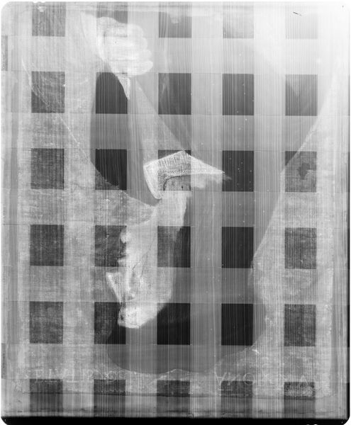 Editor: This is an X-radiograph of "Madonna and Child" by Cima da Conegliano. It's fascinating to see the original painting stripped down to its skeletal form. How do you interpret this work as an X-ray? Curator: It's like seeing the ghost of a masterpiece, isn't it? This X-ray reveals the artist's process, the underdrawings, the changes made. I imagine the artist grappling with the composition, a hidden struggle beneath the serene surface. It's a reminder that even beauty has its bones, its hidden architecture. Does seeing it this way change how you view the finished painting? Editor: Definitely! It’s like peeking behind the curtain. Curator: Exactly! We've glimpsed a secret dialogue between the artist and their work, a conversation that continues to resonate across time.