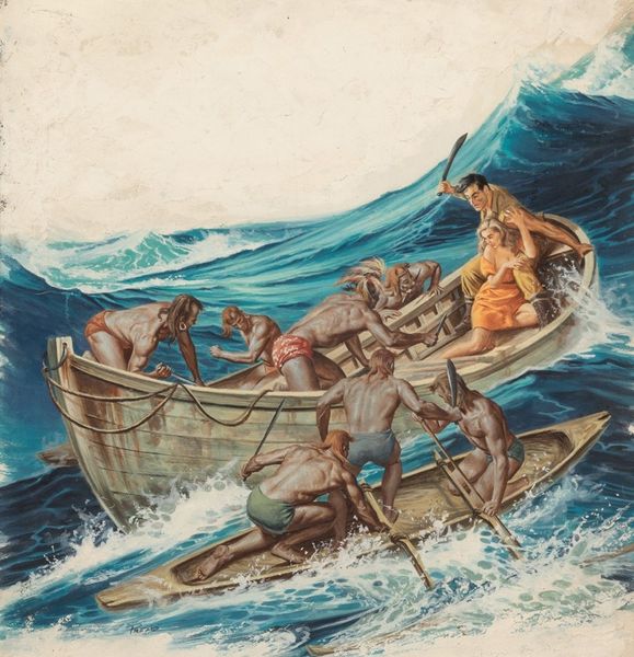 Curator: Eugène Delacroix's oil painting, "Christ on the Lake of Gennesaret," was completed in 1854. Editor: The scene is chaotic, almost turbulent, dominated by a swirling green sea and dark sky. Yet there’s this pocket of serenity around Christ. The composition alone creates a fascinating juxtaposition. Curator: Delacroix certainly emphasized the drama, and the choice of oil paint allowed him to build up texture to represent that raw energy of the storm. Note how the brushstrokes become almost violent when rendering the waves. This wasn’t just about depicting a biblical event; it was about evoking feeling. The means were aligned with the end. Editor: Absolutely. The symbols, both overt and subtle, speak volumes. The tumultuous water, a classic symbol of chaos and danger, contrasts starkly with the haloed figure of Christ, representing peace amidst the storm. And that small boat—it represents the Church, doesn't it, tossed about but ultimately safe through faith? Curator: Delacroix may have intended a comment on institutional strength—or its fragility. This work arises during an interesting time, as industrial manufacturing of paints made a wider range of colours and textures accessible to artists like Delacroix. Think about the implications for accessibility, democratization, and individual style. Editor: It's all beautifully synthesized, the fear, the desperation, and the calm at the center. I see this as less of a literal depiction and more of a symbolic exploration of faith overcoming adversity. The dark colours in the boat remind of death and hardship but are still dominated by hope that christ bring, as you so accurately say, through the medium. Curator: So much rides on materiality here. We discussed the role of new pigment technologies available at the time and now, the impact the choice to use oil-based media can give the viewers, bringing into the light, feelings through material that were invisible before this age. Editor: And the persistence of visual archetypes: storms as trials, boats as refuge. Delacroix brilliantly synthesizes religious iconography and artistic symbolism to create a resonant and timeless statement about belief. Curator: Well said. For me, the lasting impression of "Christ on the Lake of Gennesaret" isn't just the spiritual message, it's a perfect view of how artistic production creates meanings for the ages.