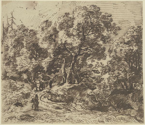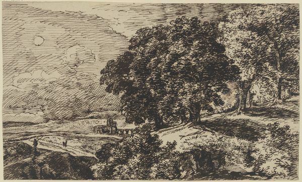 Editor: Charles-Francois Daubigny's etching, "The Ford," created in 1862, really captures a quiet, almost melancholic mood. I’m drawn to how the dark, dense trees frame the lighter, watery landscape. What do you see in this piece, something beyond the immediately obvious? Curator: Ah, yes, "The Ford"... it's one of those unassuming gems, isn’t it? To me, it’s a slice of the French countryside served with a generous helping of mood. You’ve noticed how he frames the scene—that’s crucial. It’s almost theatrical. Imagine standing there, not just looking *at* cows crossing the water, but feeling the weight of the air, the dampness... do you get that sense? Editor: I do! The darkness of the trees definitely enhances that sense of stillness. But, if it’s meant to be dramatic, is the subject matter… understated? It's just cows. Curator: Precisely! It's the beauty in the everyday. Think of it as Daubigny whispering a secret: true beauty isn't always loud, it's often in the quiet moments, like this humble ford. The cows aren't just cows, they're brushstrokes of life. He elevated this genre painting beyond simple illustration. Editor: That’s fascinating! It really does make you reconsider what is "worthy" of art. It's like Daubigny challenges you to find poetry in the mundane. Curator: Exactly! It whispers, doesn't shout. And like a good poem, it lingers, even after you move on. We begin to look at the ordinary with extraordinary vision. That's the magic Daubigny brought to the world and teaches us. Editor: Well, that completely changed how I see this piece. Thanks! Curator: My pleasure! Now you have to bring that seeing to others!