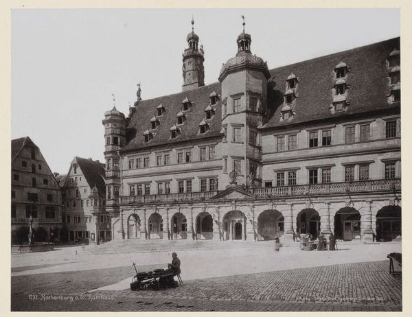 This is Ferdinand Schmidt’s photograph of the Façade van het Pellerhaus in Nuremberg. Schmidt, who lived from 1840 to 1909, captured this image during a period of rapid industrialization and urbanization in Germany. The Pellerhaus, a prime example of Renaissance architecture, stood as a symbol of Nuremberg's rich cultural heritage. Schmidt’s choice to photograph this building reflects an interest in preserving historical memory amidst modernization. The photograph serves as a historical record, freezing a moment in time and offering a glimpse into the architectural and cultural landscape of the era. Consider the absence of people. The emptiness of the square evokes a sense of solitude. What does it mean to capture the façade of a building, its surface, without the people who inhabit it? This absence encourages contemplation on the relationship between architecture, history, and human experience. It prompts us to consider what is preserved and what is lost in the act of documentation.