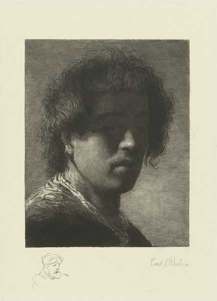 Editor: This is "Head of a Boy, facing Left," created between 1658 and 1677 by Wallerant Vaillant. It’s an etching on paper, and the detail achieved is amazing. I'm curious – what can you tell me about this work when we consider the materials used? Curator: Well, first we need to look at how Vaillant employed etching. Notice the fineness of the lines, their density creating tone, their dispersal creating light. Etching allowed for a certain kind of reproducibility – how do you think that affects the image, knowing this wasn’t a unique painting? Editor: That's interesting, since it was more reproducible it meant potentially wider dissemination. Would it be for artistic study or commercial exchange? How would this function differently to painting as an elite form? Curator: Exactly! And paper is itself an interesting material. It's relatively cheap and portable, isn't it? That speaks to a specific kind of accessibility. But look closer. Consider what it would take to produce etching at that time, the craftspeople who prepare plates, who produce paper. Vaillant depends on an entire economy, does he not? Editor: That gives the artwork another dimension. I think I was too focused on the artistic talent itself rather than the means of production that made it happen. Thanks, this has given me a new perspective to think about! Curator: Indeed! And what is craft versus 'art' anyway? Think about who gets remembered and how! It makes you wonder, doesn't it, who helped produce that paper and who they were producing it *for*?