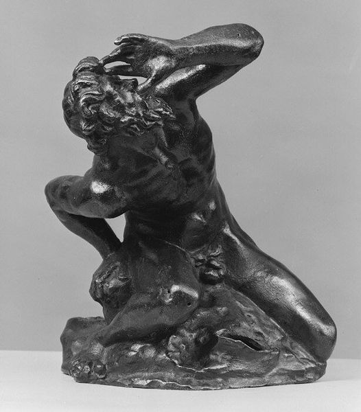 Curator: This is Aimé-Jules Dalou’s “Nude Woman,” created in 1899, and currently residing at the Metropolitan Museum of Art. It's carved from marble, a traditional medium for such figurative work. Editor: She seems…uncomfortable. Not in the classical heroic nude sense at all. The way she's perched on that rock, arms crossed, looking away. It’s as if she’s been caught unaware, and it feels oddly modern despite the material. Curator: Precisely. Dalou was working against the idealized academic tradition, although he certainly was formally trained. We must consider the socio-political climate of France in the late 19th century, a period grappling with realism and a re-evaluation of classical forms. Editor: It's fascinating how the cold, hard marble softens under Dalou's hand. It almost makes me think about the labor involved – the sheer amount of physical effort needed to coax that form from stone. It seems her skin has a polished look! I wonder what techniques and tools were used? Curator: Research suggests he likely used a variety of chisels and rasps, reflecting the division of labor prevalent in sculpture studios at the time, as various assistants would complete specific tasks. Moreover, it raises questions about the cultural construction of the female nude in art and its reception. What meanings and power dynamics are being negotiated when we publicly display her in this way? Editor: I find her averted gaze particularly interesting. It resists the objectification so common in nude studies. You get the impression that it makes her feel more like an individual, withdrawn and pensive. How did institutions exhibit work of the female figure around that time, what parameters were around these shows? Curator: Public display certainly adds layers to our understanding. Salons and exhibitions then were very much battlegrounds of aesthetic and social ideals. The nude figure acted as a test of conventional limits and evolving definitions of beauty and taste. Editor: Considering this sculpture's presence within the Met today, framed within the legacy of decorative art, forces us to consider the canon-making process. How does her narrative shift as museums make room for a broader range of works? Curator: Indeed, placing it in conversation with a wider spectrum of sculpture helps unpack the nuances of artistic expression and cultural influence during that time. It encourages viewers to question whose bodies, stories, and techniques have historically been celebrated. Editor: Reflecting on it now, she's really rather compelling, far removed from the detached perfection one associates with marble figures. Curator: And I appreciate how this work makes us rethink academic norms and raises necessary dialogues regarding gendered representations in sculpture.