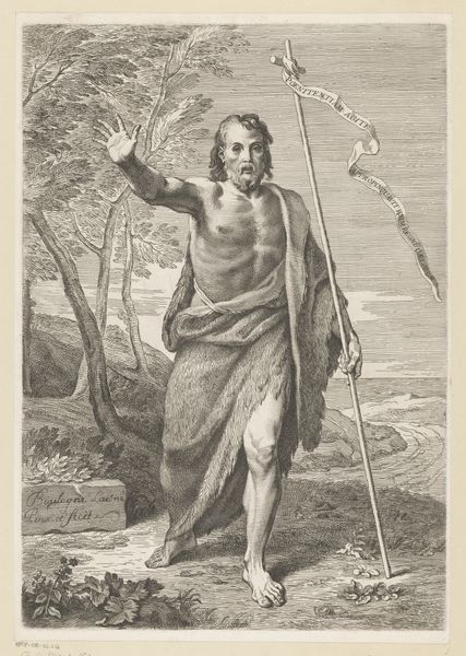 This is Francesco Villamena's depiction of Saint John the Baptist in the wilderness, made with engraving techniques. Engraving demands meticulous skill and a deep understanding of materials. The artist would have used a tool called a burin to carve lines directly into a metal plate, likely copper. Ink is then applied to the plate, and the surface wiped clean, leaving ink only in the carved lines. Finally, paper is pressed against the plate, transferring the image. Look closely, and you can see how the varying widths and depths of the engraved lines create tonal contrasts, giving form to John's figure, his lamb, and the landscape. This print wasn't just about religious devotion, it was also a product of a sophisticated printmaking industry. Consider the labour involved: from mining and refining the metal, to the skilled work of the engraver, and the operation of the printing press. Paying attention to materials and making helps us appreciate the artistic skill and social context embedded in this compelling image.