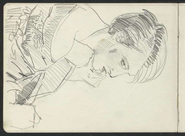 Isaac Israels made this drawing of a seated woman with a cigarette, we don't know when, using a pencil on paper. The marks are immediate, quick, and searching. You can almost feel the artist circling around the form, trying to pin down the essence of the figure. Look at the lightness of touch, how the pencil barely kisses the page in places, leaving a ghost of a line. Then, notice the darker, more confident strokes that define her face and hair. It's like a dance, a back-and-forth between certainty and doubt. The physicality of the medium here is so evident, there's no attempt to hide the process. It's all there on the surface, naked and vulnerable. The lines around the woman's eyes are particularly telling. They're soft, almost hesitant, suggesting a vulnerability beneath the surface. It reminds me of some of Degas's drawings, that same sense of capturing a fleeting moment, an unguarded expression. Art is such an open-ended conversation, isn't it?