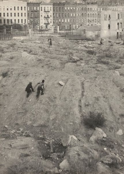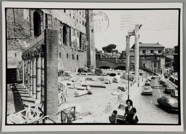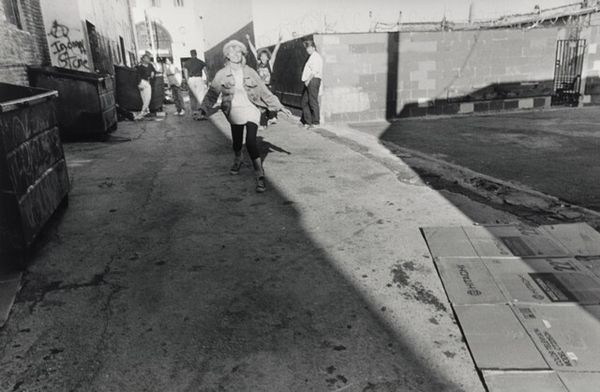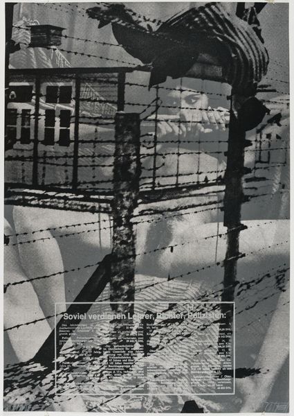 Curator: Don McCullin's photograph, "East German Guard, Berlin Wall," offers a stark glimpse into a divided city. Editor: It feels so desolate. The barbed wire, the uniformed guard walking away, it just screams loneliness, doesn't it? Curator: McCullin, a master of war photography, captures the political climate and the human cost of division, the very real implications of Cold War ideologies on everyday life. Editor: Absolutely, and the rubble in the background gives this photo an apocalyptic feel. Like everything is falling apart. Did anyone feel safe there, I wonder? Curator: His stark compositions often serve as commentaries on power, oppression, and the psychological impact of conflict. Editor: It's heavy, profound. The way McCullin captured this moment, makes you think about freedom, borders, and the stories of people trapped in history. Curator: Indeed, it encapsulates a crucial historical period and encourages reflection on the consequences of division.