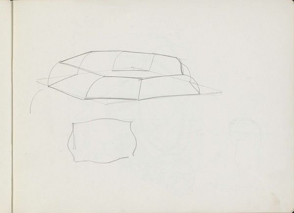 Curator: This is entitled "Studies", by Carel Adolph Lion Cachet, and it dates from about 1905 to 1910. It’s currently held in the Rijksmuseum, and the materials are pencil and graphite on drawing paper. Editor: Immediately I am drawn to its sense of incompleteness, a series of fleeting impressions rendered in simple lines. It has this ghostly, ephemeral quality to it. What do you make of these particular forms? Curator: The objects depicted seem to hover between the functional and the symbolic, between a rudimentary vessel and pure geometric shape. There’s this interesting dialogue between suggested form and raw abstraction. The repetition of simple lines to denote curvature… it speaks to the inherent symbolism embedded in commonplace objects. Editor: I wonder what was he investigating. The composition invites reflection on consumerism of this era. Everyday objects sketched over and over like this elevate and transform mundane shapes into something worthy of contemplation. Curator: It almost recalls those memory exercises that sought to link mental imagery with spiritual insight. The artist seems to be reaching for something deeper in the shapes. Perhaps trying to distil their inherent spiritual significance. Editor: Or maybe it’s Cachet interrogating mass production’s ability to change society. By emphasizing form over function in consumer objects, does it critique capitalism’s empty pursuit of fleeting pleasures, revealing how quickly utility transforms into waste? Curator: It's tempting to apply that kind of lens but remember the context – the turn of the century was filled with explorations of mysticism and the hidden aspects of reality. I feel a distinct resonance with the symbolism found in other Art Nouveau works. Editor: Still, an aesthetic response doesn’t preclude a political awareness. Art often embodies contradictions of their time. To ignore its critique of consumerism, I think, overlooks the image's complexity. Curator: That push and pull between form and utility resonates, doesn't it? The drawing prompts consideration not just on what we see, but on the deeper significance we project onto these elemental shapes. Editor: Yes. It really challenges us to reflect on the objects around us and consider our complicated relationships with the things we value.