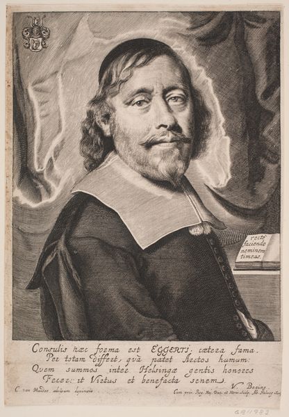 Reinier van Persijn created this print of Ludovico Ariosto sometime in the 17th century. It's made using engraving, a process rooted in skilled labor and precise execution. Engraving involves meticulously cutting lines into a metal plate, which then holds ink to transfer the image onto paper. The depth and density of these lines create the tonal variations we see in the print, from the fine details of Ariosto's face to the textures of his garments. The material of the metal plate, likely copper, allows for incredible detail, but also demands patience and expertise. Each line is a physical mark of the engraver's hand, reflecting hours of labor and a mastery of technique passed down through generations. This print not only captures Ariosto's likeness, but also embodies the social context of its creation, where skilled craftsmanship and artistic production were intertwined with economic structures and systems of patronage. It reminds us that even in the realm of fine art, materials, making, and context are crucial to understanding its full meaning.