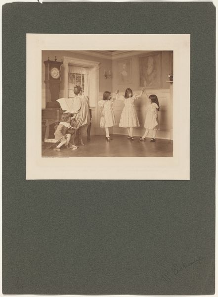 This photograph by Fotobureau Stevens captures a scene from the play 'What Happened to Jonas,' and although undated, we can tell a lot from its materiality. The gelatin silver print, a process refined in the late 19th century, democratized photography, allowing for mass reproduction. The choice of this process speaks volumes about the intended audience, likely a broad public, interested in theater but perhaps not wealthy enough to collect original art. The sharp monochrome image freezes the actors in mid-performance, the stage set meticulously arranged with familiar markers of bourgeois life. Consider the labor involved – not just the photographer’s skill, but also the actors, set designers, and the playwright themselves. It’s a record of collective effort, all rendered in shades of gray through chemical reactions on a humble sheet of paper. Looking at this image, it is clear that photography, like theatre, relies on complex production, and it's important to consider this to fully understand its cultural and historical value.