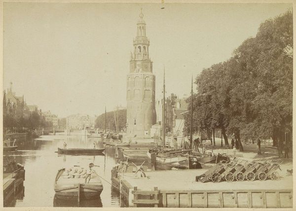 Andries Jager made this photograph of the Oude Schans and the Montelbaanstoren in Amsterdam sometime in the 19th century. The image presents us with a seemingly objective view, yet photography at this time was deeply entwined with social and institutional agendas. The emphasis on architectural details, for instance, reflects a growing interest in urban planning and preservation. Amsterdam, a city built on canals, was experiencing rapid industrialization, and photographs like this served both as records of the past and tools for envisioning the future. Consider too the role of the Rijksmuseum, where this photograph now resides. It was founded in 1800 to display national art and historical artifacts; this photograph, as a document of Amsterdam's urban landscape, would have been considered an object worthy of collecting and displaying. To fully understand this photograph, we can turn to city archives, historical maps, and studies of 19th-century urban development. The meaning of art is always contingent on its social and institutional context.