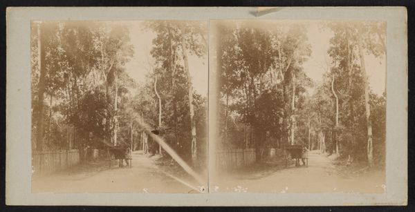 This stereograph, captured by Robert Julius Boers, depicts a scene from Soengeiliat, likely in the late 19th or early 20th century. The road, flanked by dense foliage and simple dwellings, speaks to the interconnectedness of nature and human life in this region. Note the road itself, an ancient symbol of journey, both physical and spiritual. Roads appear throughout art history, from Roman maps to medieval pilgrimage routes, each carrying the weight of human experience and aspiration. Consider how the road here, winding into the distance, evokes a similar sense of longing and potential. It invites us to contemplate our own paths, our own journeys through life. This image, simple as it seems, resonates with the deep, universal human desire for exploration and understanding. The symbolism is cyclical, resurfacing through time with each traveler that walks its path.