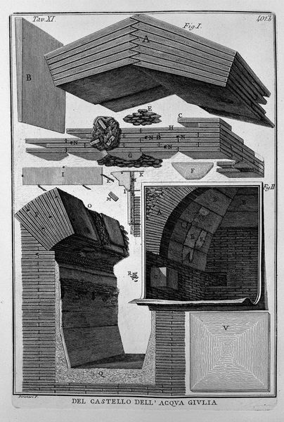 Giovanni Battista Piranesi, around 1750 to 1778, created this print, likely an etching, of a column made from carefully joined stones. The image dissects the modes of production that were crucial to monumental architecture in the Roman era. The material is not just stone, but also the skilled labor required to quarry, carve, and assemble these massive blocks. Look at how Piranesi details the surfaces, textures, weights and joinery of each component. The column isn’t a seamless monolith but a composite of individual parts, each demanding precise craft. The visible marks, holes, and carved profiles speak to a long lineage of building practice. These techniques, passed down through generations of stonemasons, are as essential to the final form as the stone itself. The print lays bare the social context of construction, with its implied hierarchy of patrons, architects, and laborers. By emphasizing these material and process-oriented aspects, Piranesi challenges any purely aesthetic appreciation of ancient architecture. He reveals the immense effort required to realize such grand designs, prompting us to consider the human cost and ingenuity behind these lasting structures.