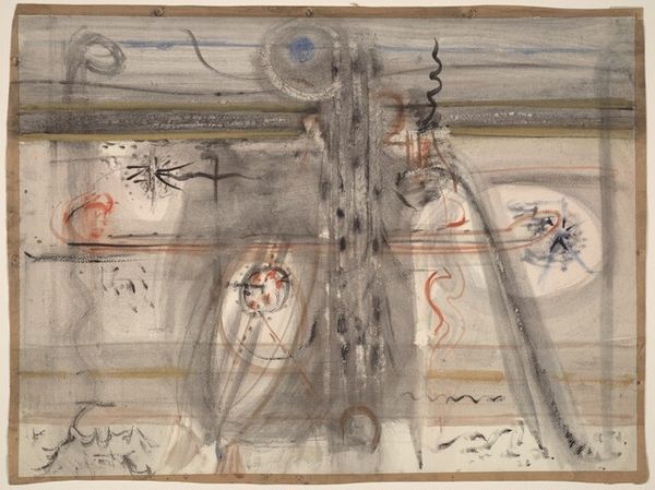 This Untitled work on paper was made by Mark Rothko, sometime in the mid-20th century. He's using watercolor, graphite, and ink, and the way he lets them mix and mingle tells me he’s thinking about artmaking as a process. Look at how the watery blues and grays bleed into the stark whites, and the spidery quality of the ink work dancing over the top, like a doodle in a dream. There's texture, sure, but it's mostly about the way the colors interact. Those reds floating amidst the cool tones remind me how color can be both assertive and elusive. Then there’s this little half-circle of black up on the top right, all by itself – a curious little mark that pops out, asking us what it's doing there. It’s like Rothko is having a conversation with himself, or maybe with us, about what it means to make a mark, to leave a trace of thought and feeling. It makes me think of Cy Twombly, with that similar sense of letting things be unresolved, inviting us to fill in the gaps. It’s all about embracing the ambiguity, letting the questions linger, and letting the art be a space of endless possibilities.