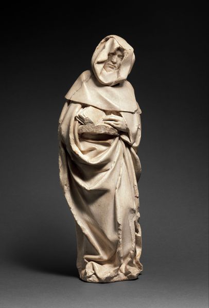 This statuette of Willem Bilderdijk, the poet and historian, with its pedestal, was crafted by Jean Theodore Stracké. The wood's uniform tone, a pale ochre, allows the eye to focus on the intricate layering of forms that define the subject's figure. Stracké's treatment of the wood surface establishes the overall meaning. The sculpture presents Bilderdijk as a figure defined by layers – from his textured hair to the cascade of his coat, each segment contributes to the overall volume. His posture suggests a moment of reflection, anchoring the composition in a classical form. The base, adorned with cherubic figures, adds another layer, blending secular reverence with traditional artistic motifs. This intersection of form and symbolism invites a deeper interpretation, revealing a discourse on the interplay between artistic expression and cultural commemoration. It doesn't simply represent, but embodies, through its very structure, the act of honoring and remembering.