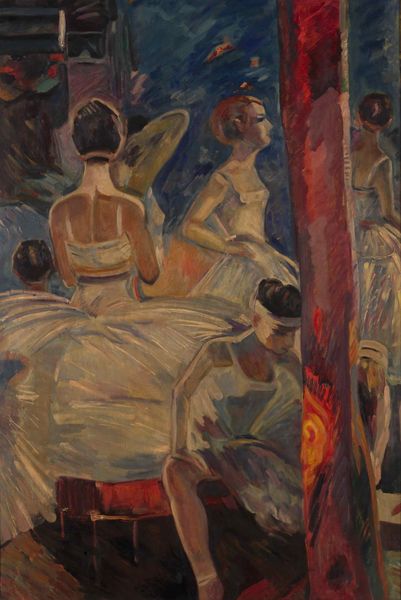 Editor: Here we have Salman Toor's "Dancing to Whitney" from 2018, made with oil paint. I find the hazy figures really intriguing. It gives the scene this intimate, dreamlike quality. It feels very personal, like a snapshot of a private moment. What's your take on this piece? Curator: That intimacy you describe really resonates. I think Toor captures something incredibly specific about contemporary social life, especially the diasporic experience. Look at the way the figures are rendered, almost floating within the scene. There's a sense of longing and belonging intertwined, wouldn’t you say? And, of course, the title points us towards a specific kind of emotional release, perhaps in the company of friends, fuelled by nostalgia. Do you pick up on the colours he chooses? Editor: Yes, the slightly muted tones contribute to the dreamlike quality, for sure. I guess it gives it a nostalgic vibe as well, as if we are watching an old memory being replayed on a loop. And you mentioned diaspora – is there anything else that relates the artwork to that cultural background? Curator: Absolutely! Think about the Western art historical canon, the legacy of painters like Toulouse-Lautrec capturing scenes of Parisian nightlife, and how Toor subtly subverts that. He transposes those tropes onto a contemporary scene featuring brown and queer bodies. The very act of representation becomes a powerful statement. It invites a sort of reflective space. Editor: That's such an insightful way to look at it! I was so focused on the emotional tone that I missed the deeper layers of cultural commentary. Curator: It's easy to get lost in the feelings! Toor’s work is fantastic because it operates on so many levels. Each viewing offers something new, and often challenges you! Editor: Thanks! Now I am excited to come back to it on my own.