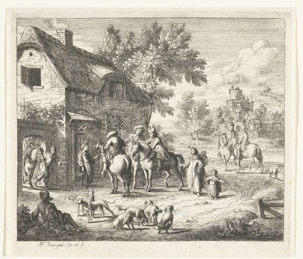 Wenceslaus Hollar created this print, "Fable of the farmer and his donkey," using etching techniques. The image presents an old fable that reflects on social behavior. Made in the 17th century, probably in the Netherlands, the artwork portrays a farmer riding a donkey while his son walks alongside. This was a period marked by significant social stratification, with rigid expectations based on age and status. Here, Hollar uses visual codes to question these norms. The cultural reference to a fable allows the work to explore the politics of imagery. The artwork subtly critiques institutional hierarchies. By presenting a scenario where traditional roles are inverted, it invites viewers to question established power dynamics. Historical archives and literature from the period would provide additional context, revealing the extent to which art served as a form of social commentary. Ultimately, understanding art requires an appreciation of its social and institutional context.
