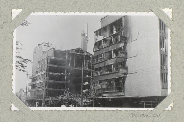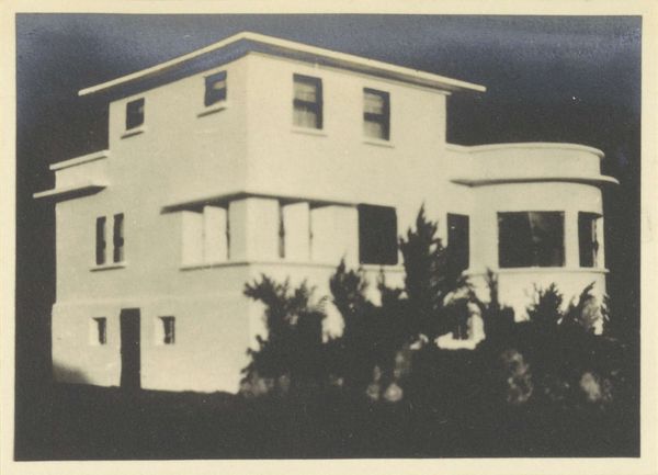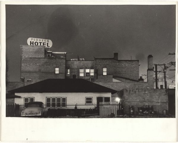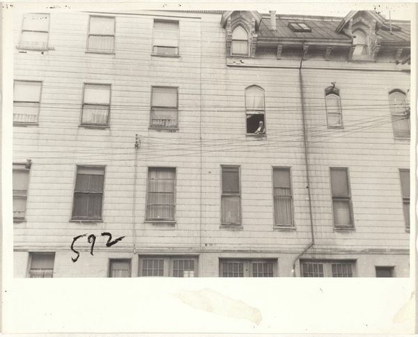 Editor: This is Robert Frank's "Buildings--San Francisco," taken in 1956. It's a silver gelatin print, capturing a row of rather stately, somewhat austere buildings. The almost severe symmetry creates such a rigid feel. What strikes you when you look at this, considering the year it was taken? Curator: Austere, yes, like silent sentinels guarding some long-forgotten secret! Robert Frank was so good at revealing the subtle sadness clinging to the edges of things. He captured America as he experienced it. But there is light in the picture too; isn’t there always? Do you get the sense that what's just out of the frame is actually very lovely and inviting? Like, we see so much, but are allowed very little. Editor: I didn’t pick up on that! So, you see it as almost a commentary on what is shown versus what's concealed from view? Curator: Exactly! I think there is a bit of voyeurism as well; we gaze into these windows, catching glimpses, but the real lives within remain just out of reach. And isn't that what urban life often feels like? We are both intensely connected, but incredibly isolated. Did you notice that these buildings aren't new and shiny; in fact they already had age to them? Almost like those who live within already existed before we saw them. Editor: That's so true. There is this layered story that just doesn’t scream to be seen. I hadn’t even considered how well this photograph encapsulates that duality of urban living. I guess I saw what I expected to see: old buildings! Curator: But now you see what you didn't expect! And the real magic happens when you begin to really explore the art as well. Thanks for allowing me to travel, for a moment, into a time where the quiet felt just like this photo. Editor: That feeling is definitely now coming across to me as well! A new perspective is quite powerful.