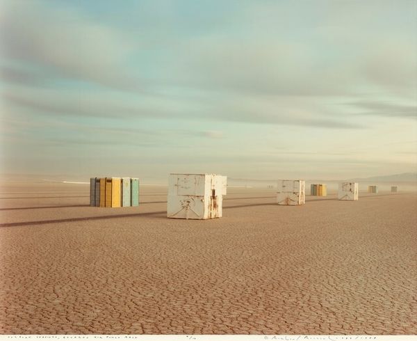 Richard Misrach created this photograph, "The Santa Fe," with an eye to the vast American landscape. Misrach, born in 1949, focuses on humanity’s impact on the environment, particularly in the American West. His large-scale color photographs often depict open spaces marked by human intervention. Here, the long freight train cuts across the horizon, a stark reminder of industry bisecting the land. The Santa Fe railroad itself carries layers of history, both connecting and dividing communities. It supported economic expansion but also displaced indigenous peoples and transformed natural habitats. Misrach captures the quiet tension between nature's resilience and industrial encroachment. The muted colors evoke a sense of solitude. By emphasizing the scale of both the landscape and the human-made train, Misrach asks us to consider our relationship with the environment. The photograph doesn't offer easy answers, but invites us to reflect on the complex interplay of progress, exploitation, and the enduring beauty of the land.