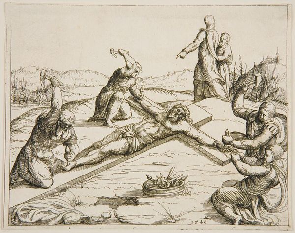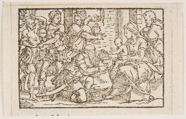 Editor: This woodcut, called "Cain and Abel," is by an anonymous artist. It's a stark scene, full of violence and anguish. What strikes you when you look at it? Curator: The brutality is undeniable, but let's consider the societal context. This image, endlessly reproduced, reinforces a patriarchal narrative where jealousy and fratricide stem from divine favor. How does it serve to establish hierarchies and moral codes? Editor: That's a perspective I hadn't considered. I was focused on the immediate horror. Curator: Exactly! It's designed to elicit that response. But we must also ask, whose story is being told, and who benefits from the telling? Editor: That's a powerful question to ask of any artwork, really. Thanks for helping me think about this more deeply. Curator: My pleasure. Art is never neutral.