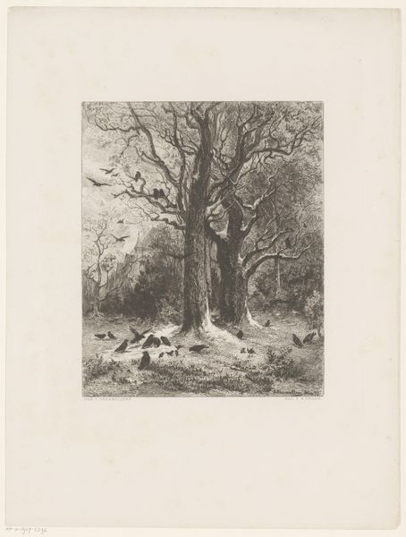Willem de Zwart created this etching of a woman with a cow on a country road. The composition is structured by the road’s diagonal recession into the landscape, balanced by vertical trees. De Zwart’s use of etching captures the subtle gradations of light and shadow across the scene. Notice the delicate lines which define the forms, from the woman’s dress to the texture of the foliage. The monochromatic palette emphasizes tonal variations, creating a unified atmospheric effect. The way in which the artist uses light and shadow brings depth to the simple, rural scene. The work fits into late 19th-century art, when artists aimed to record scenes of everyday life with an emphasis on realism and naturalism. The structured composition and careful modulation of tone is a reflection of the artist's observation and interpretation of the natural world. It invites us to consider the role of nature within art and culture.