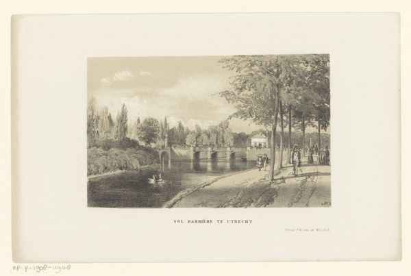 Pieter Wilhelmus van de Weijer made this print of the Maliebrug in Utrecht sometime in the 19th century. During this period, the Netherlands was experiencing a time of relative peace and prosperity following the Napoleonic Wars. In this image, the artist captures a tranquil scene of leisure and recreation. We can see figures strolling along the tree-lined paths, while others enjoy a leisurely boat ride on the canal. The bridge itself becomes a focal point for social interaction, a place where people gather to see and be seen. Van de Weijer's print invites us to reflect on the ways in which public spaces shape our experiences of community and belonging. This artwork is a glimpse into a moment of respite and connection amidst the ebb and flow of daily life.