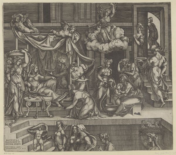 Editor: This print, titled "Raising of Lazarus with Scenes from the Life of Christ," doesn't have a specific date, but it's by Romeyn de Hooghe and done in etching and engraving. There's a lot going on here – it feels busy, dramatic. How do you interpret this work? Curator: It’s a fascinating convergence of narrative and symbolism. The central image, the Raising of Lazarus, is powerful, but the artist embeds it within a larger context of Christ's life. Notice the smaller scenes flanking the main event. How do they change how you feel about the image of Lazarus? Editor: I see what you mean! So, it’s not just about the miracle itself, but about the broader impact of Christ’s presence and power, or how the whole of his life is implicated in this singular miracle. Curator: Precisely. Lazarus is shrouded, death clinging to him, yet Christ's gesture is definitive. What emotional or psychological impact do you think the artist aimed for by surrounding it with the other scenes, like, for example, that depiction of a meal in the lower corner? Editor: Perhaps to remind us that even amidst death and the miraculous, life, mundane life, continues. I think I understand how de Hooghe weaves multiple stories into one image – it really reinforces the complex web of faith and humanity. Curator: Indeed. And within the Baroque style of art and architecture at the time, there was also emphasis on capturing drama and strong feeling as a signifier of faith, as opposed to rational arguments. Look at the emotions of the other figures in the main scene. Editor: Now that you mention it, their expressions really amplify the sense of awe and, honestly, a little bit of fear. Curator: This is a perfect illustration of how images carry so much cultural and psychological weight and what they leave as memory. Editor: I’ll never look at a complex historical piece the same way! Thank you.