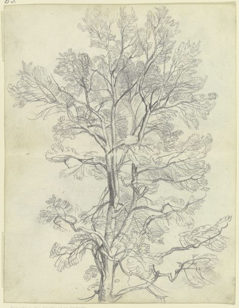 Jean Victor Bertin made this drawing of a landscape with trees using graphite on paper. The material itself is quite humble. Graphite, essentially refined charcoal, has been used for sketching and drawing for centuries, prized for its ability to create nuanced shades of gray. Paper, too, while now ubiquitous, was once a precious commodity, handmade from fibers and carefully sized to receive the artist's marks. Looking at the drawing, you can almost feel the artist's hand moving across the page, building up layers of graphite to create the forms of the trees and the reflections in the pond. The graphite lends itself to the depiction of light and shadow, giving the scene a sense of depth and atmosphere. The artist's skill in manipulating this simple material elevates the drawing beyond a mere study into a work of art in its own right. The drawing invites us to consider the value we place on both materials and skill, and to challenge the traditional hierarchy between fine art and craft.