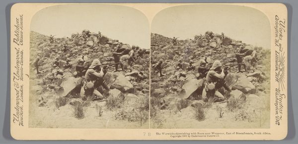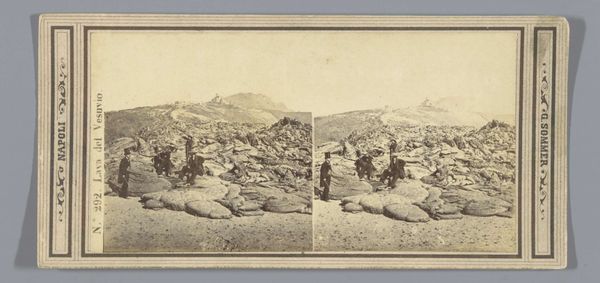 Editor: This is Isaac Israel Hayes' "Esquimau," taken sometime between 1857 and 1861. It’s an albumen print, and what strikes me immediately is the desaturated color – it gives the scene a sort of timeless, desolate feel. What do you see in this piece? Curator: This photograph is much more than a visual record; it’s a symbolic encounter. Hayes, an American explorer, captured this image during a time of increasing Western fascination with the Arctic and its inhabitants. But what does the word ‘Esquimau’ evoke for you? What emotions, perhaps even biases, does it stir? Editor: I guess it feels like…a label from a different time. I'm aware it's an outdated and potentially offensive term. Is there more to unpack here? Curator: Indeed. Consider how the term was used then – often laden with stereotypes. Look at the man's posture, bent over, seemingly collecting something. How does this pose, framed within this stark landscape, influence our perception of his labor and his connection to the land? Does it tell a story of resilience or perhaps something else? Editor: It makes me think about how photographs like this might have shaped public opinion back then – creating a narrative about a culture and people very different from their own. Curator: Precisely. The symbols present - the clothing, the barren landscape, even the desaturated tones - collectively build a cultural narrative. These elements invite viewers to contemplate not just the scene, but also their own assumptions and cultural memory surrounding encounters with indigenous peoples. Are we looking at a neutral document, or something more constructed? Editor: I see what you mean. I had initially only focused on the aesthetic qualities of the photo, but now I realize there are layers of cultural meaning embedded in every detail. Curator: Exactly. The photograph challenges us to acknowledge how historical images can carry significant emotional and psychological weight and also shape perceptions of different people.