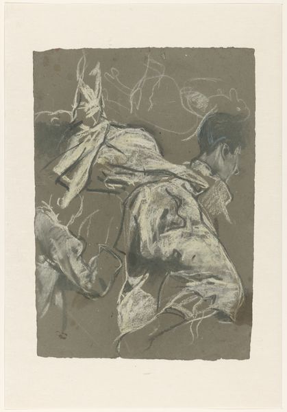 Editor: Here we have Louis Delsarte’s "Unity (mylar/separation)," rendered in what looks like graphite. The figures seem almost ghostly, emerging from a chaotic background. What can you tell me about it? Curator: The fragmentation and layering speak to the complexities of identity and belonging, especially within the African diaspora. Delsarte seems to be asking us to consider how historical forces shape familial bonds and individual narratives. What stories do you think Delsarte is trying to tell? Editor: It feels like a story of resilience despite fragmentation, a reaching towards wholeness. Curator: Exactly. The "unity" in the title takes on a poignant meaning when viewed through the lens of historical displacement and the ongoing struggle for recognition. Food for thought.