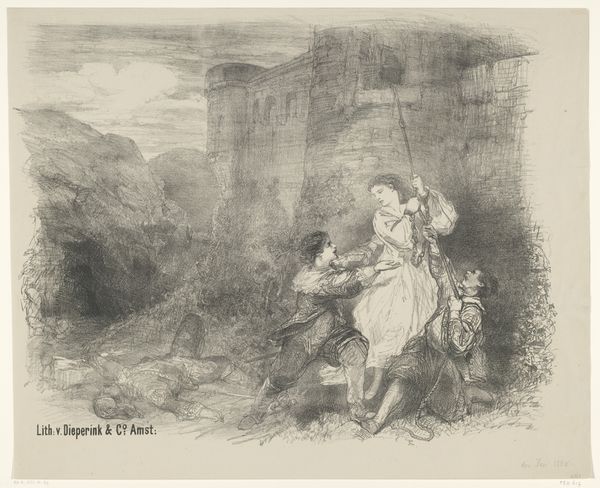 Curator: This is Rembrandt van Rijn’s etching, “The Agony in the Garden,” created sometime between 1647 and 1657. Editor: There's a stark contrast here. The heavy lines etched into the plate create an oppressive atmosphere, mirroring the scene's emotional weight. It looks as though all hope is lost. Curator: It’s remarkable how Rembrandt uses the etching process to build such deep tonal contrasts, isn't it? Think of the technical skill required, manipulating the copper plate, controlling the acid’s bite to achieve such luminosity in places and profound darkness in others. You can almost feel the work that has gone into it. Editor: Absolutely. The religious theme positions the individual—Christ—against institutional power embodied by the looming, dark structures in the background. Rembrandt's placement underscores the tension between personal sacrifice and broader socio-political systems of the period. It's a narrative etched—literally and figuratively—in suffering. Curator: I'm fascinated by the relationship between drawing and printing inherent in the etching process. It allows Rembrandt to explore line and tone in a manner that a straightforward drawing would not. This particular print allows us to think about art production during a specific period in the Netherlands. The market demand would inevitably dictate the number of copies produced, and the wear of the plate, its subsequent states, provide material evidence of its journey of consumption. Editor: Right, and it speaks volumes about faith during periods of great upheaval. Religious narratives offer a space to discuss social injustices, political angst, and the individual's place in the grand scheme. This agony, represented with striking human vulnerability, becomes universalized through the print’s accessibility and mass circulation. How does this work then connect with current socio-political discourse today? Does the piece lose potency with its traditional approach, or does this enhance our engagement with it? Curator: It offers such tangible insights into the economics of artmaking and consumption, revealing production practices during the Dutch Golden Age. Editor: The print becomes both a mirror reflecting historical realities and a window into ongoing struggles, rendering it remarkably relevant. Curator: A wonderful intersection of the artistic and the societal, don't you think? Editor: It's in these nuanced connections where its continued resonance truly lies.