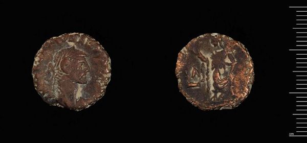 Editor: So, this is a Tetradrachm coin from Alexandria, issued during the reign of Claudius II Gothicus. It looks timeworn, really showing its age. What can you tell me about its historical significance? Curator: Coins like this were tools of imperial messaging. The portrait of Claudius, even in profile, reinforced his power across a vast empire. How do you think its circulation influenced public perceptions of Roman authority? Editor: That's interesting, I hadn't thought about that. It's more than just money, it's propaganda! Curator: Exactly. And Alexandria, a major cultural hub, played a key role in disseminating these images and ideologies. Considering that, how does seeing the coin in a museum like Harvard's change its meaning again? Editor: Wow, it makes you consider how much meaning an object can accumulate over centuries. Thanks! Curator: My pleasure! It is a fascinating study in the power of objects and their journey through time.