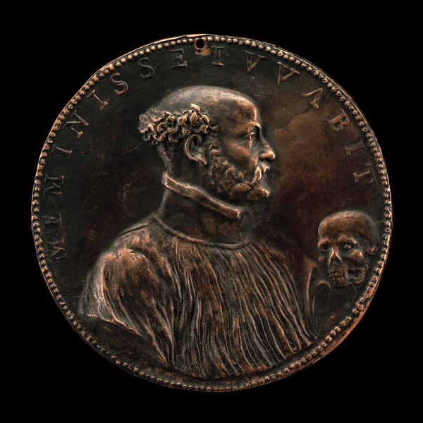 This bronze medal, created by an anonymous artist, portrays Antoine de Loménie, a counselor and Secretary of State in 1606. The medal presents a study in contrasts and subtle textures. The subject, depicted in profile, dominates the composition, his form tightly confined within the circular boundary, creating a sense of immediacy. Note how the artist has rendered the textures of fabric and skin, contrasting the smooth planes of the face with the intricate patterns of the robe. The inscription that frames the portrait functions as both a border and a semiotic device, adding layers of meaning to the image. The overall effect is one of restrained power, where the formal elements of line, texture, and composition work together to convey the sitter's status and character. The medal is not merely a representation, but a carefully constructed object designed to communicate specific ideas about identity, power, and representation in the early 17th century.