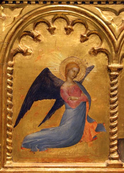 Giovanni da Milano made this "Annunciation" using tempera and gold leaf, a testament to the value placed on the divine, and on devotional images at the time. The gold isn't just decoration; it's fundamental. Applying it requires immense skill, and would have involved grinding the metal into a fine powder, mixing it with a binding agent, and then carefully applying it to the panel. The smooth, reflective surface alters our perception, emphasizing the unearthly quality of the scene. Tempera painting, with its precise, linear qualities, suits this symbolic style. See how the folds in Mary’s robe are rendered with delicate brushwork. The pigments, ground from minerals and plants, would have been carefully layered to create depth and luminosity, a slow, deliberate process. This blend of craft and artistry is at the heart of the work's meaning. It collapses any distinction between craft and fine art. The value here isn't just in the image, but in the labor and materials it embodies.