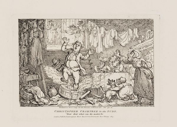 Curator: This print, "Aftocht van de keurvorst van Beieren en de Fransen, 1708," created by Carel Allard and residing here at the Rijksmuseum, depicts a historical narrative through engraving and etching techniques. Editor: My first impression? It's teeming with details. The contrasting use of fine lines creates depth and seems to serve a symbolic language within the whole structure. Curator: Indeed. Let's consider Allard's artistic choices: The deliberate combination of etching and engraving allowed for varied textures, perhaps reflecting the turmoil and complexities of the event being portrayed. This use of process mirrors the disorder in its social context. Editor: The way he manipulates light and shadow—particularly in the figures' garments—draws the eye and helps decode the narrative. Semiotically, notice the symbols employed: What can we infer about Bavarian power from the scale of figures or objects that represent it? Curator: These symbols highlight production capabilities of the engraver. It suggests Allard, through this medium, sought to influence public sentiment against the alliance through accessible art for consumption, effectively weaponizing the means of reproduction. Editor: But isn't it about the artwork too? The Baroque dynamism of the composition heightens the sense of chaos. Every component of the design contributes to that feeling of imbalance. It certainly does not depict order; consider that distortion and asymmetry might function as primary visual components in reading this. Curator: It’s hard to dismiss the intended effect that propaganda would’ve had on its intended audience, not merely by evoking strong visual sensations, but by explicitly communicating a polemic to disparage France’s leadership. Editor: Well, regardless, a rigorous structural examination is fundamental here. To truly experience art, we must understand the relationship of the image's core parts to each other. Curator: It seems both the context and means that underscore Carel Allard’s creative choices deepen our grasp of this moment in history and this work as a material object with cultural utility. Editor: Absolutely! Both our engagement and contemplation—formal or contextual—enhance how we value this print.